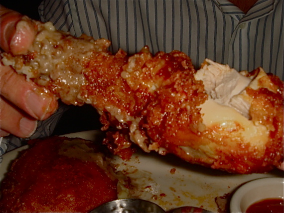 At any rate, in lieu of the chowder, catfish and grits was absolutely award-winning: the catfish was blackened and zesty- a welcome respite from the omnipresent cornbread crust. Instead, the corn element was represented by loose, textured grits, corn-sweet and thick, studded with smoky chunks of chorizo. Big-as-I've-seen caper berries, which I initially mistook for slices of okra, were substantially mature and tasted more like green olives than pungent capers. (I would've preferred the okra.) And I wouldn't have minded the seasoning even a bit kickier, but the chili sauce from the chicken swooped in for an assist.